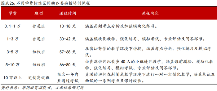 招录考培行业的规模=报考总人数*参培率*客单价,报考人数、参培意愿、客单价持续提升驱动行业增长。根据弗若斯特沙利文报告,我国招录类考试培训规模由2016年的201亿元增长至2021年的305亿元,复合增速为9%;预计2026年可达到505亿元,2021年-2026年复合增速为11%。具体拆分量价来看,2016年-2021年学员人次/客单价复合增速分别为8.1%/0.6%,预计2021年-2026年人次/客单价复合增速分别为7.7%/2.7%,参培人次稳步增长,客单价亦提升。