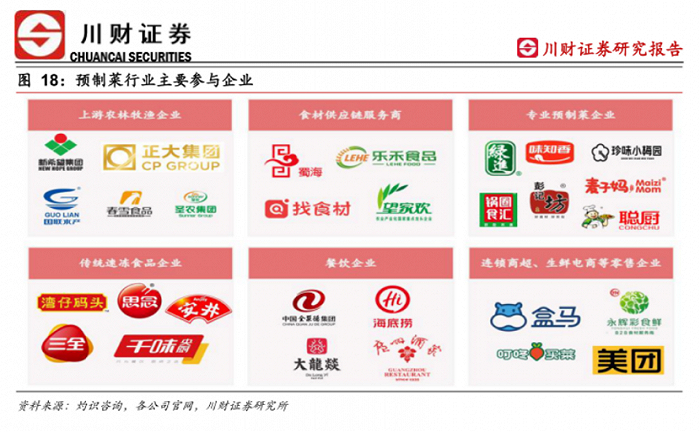 六是,依托线上平台拓展预制菜业务的连锁商超、生鲜电商等,如盒马鲜生、叮咚买菜等。
