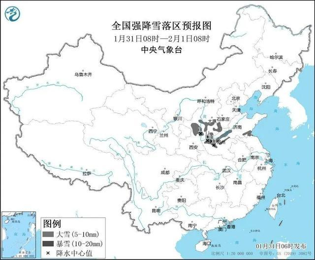 中央气象台1月31日06时发布暴雪蓝色预警: