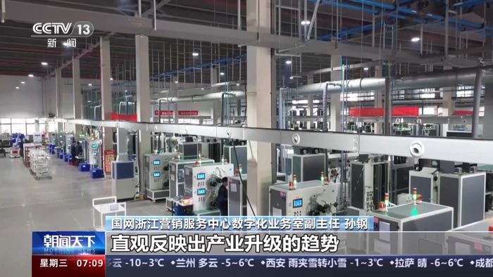 国网浙江营销服务中心数字化业务室副主任 孙钢:浙江工业用电正呈现出“一加一减”,直观反映出产业升级的趋势。“减”体现在铝冶炼这些高载能行业,用电量同比下降13.32%,光伏设备及元器件制造业用电量则在做“加法”。
