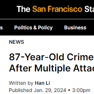 但这并不是廖先生在旧金山街头遭遇的唯一一次袭击。据他的儿子说,去年10月1日,廖先生在Market Street再次遭到袭击。一份警方报告显示,一名符合廖先生相貌的86岁亚裔男性是一场无端袭击的受害者,嫌疑人对其拳打脚踢。受害者被送往医院,伤势没有生命危险。