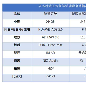 目前小鹏汽车是城区智能驾驶功能覆盖城市数量最多的汽车公司。华为原定在去年底推送覆盖全国的城区智驾功能,后推迟至春节前。