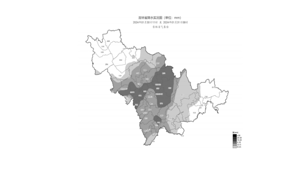 截至31日08时,全省平均降雪量2.6毫米,地区分布:吉林5.1毫米,辽源4.7毫米,四平4.4毫米,长春 4.1毫米,通化3.5毫米,白山3.3毫米,其他地区不足1毫米。