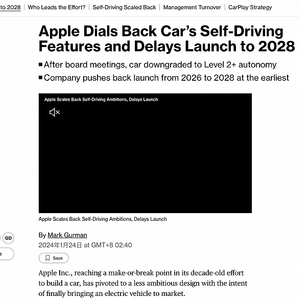 近日,彭博社Mark Gurman发文称,苹果汽车的发布日期已从2026年延期至2028年,并且车辆的自动驾驶级别也下调至L2+。
