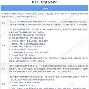 关于城市更新,国家层面和各地区尚未形成统一的规定,北京、上海、广州、深圳、重庆及成都等地出台的规定中将城市更新做如下界定: