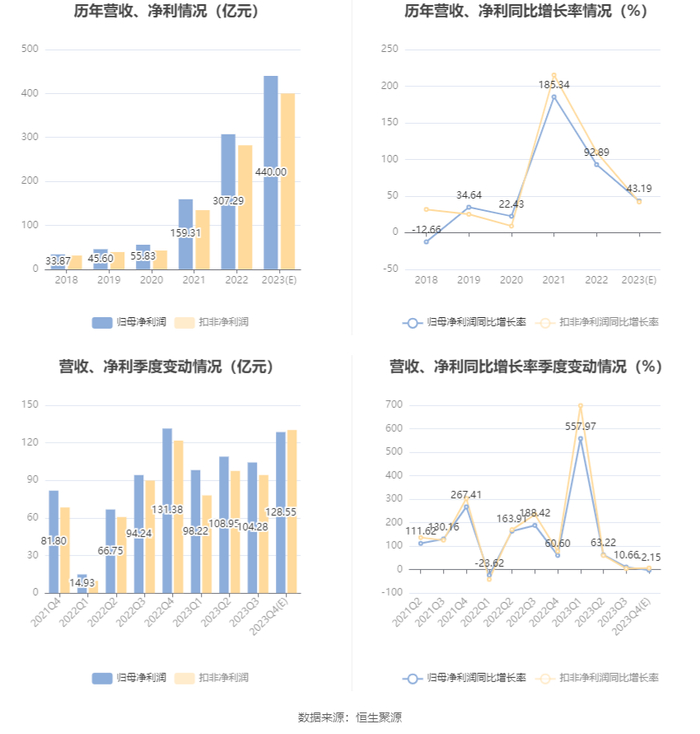 宁德时代:预计2023年净利425亿元-455亿元 同比增长38.31%-48.07%