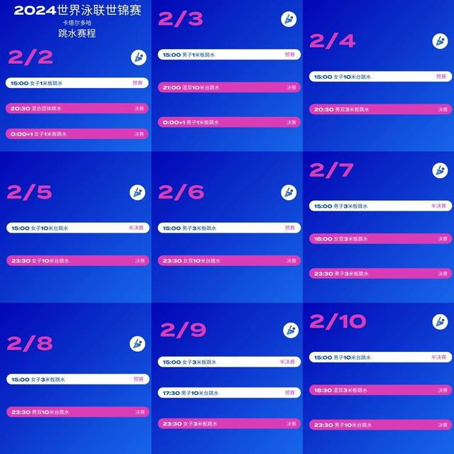 世界泳联发布游泳世锦赛跳水项目赛程。