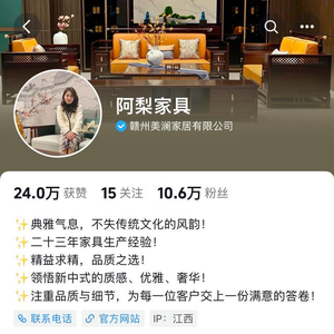 “阿梨之前在别的公司做主播,销售的是新中式家具,当时爆发期一场也卖过三五十万,她觉着新中式家具比较有潜力。”郭海洋说,“吸取之前的教训,我们就想一心一意把一件事做好。”