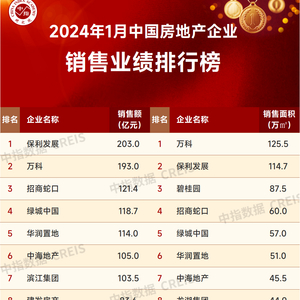 2024年1月中国房地产企业销售业绩排行榜