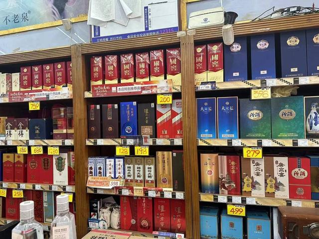 对于200元以下的白酒种类,记者走访商超时发现,不少该价格段的白酒产品促销力度较大,比如买一瓶多加一元送一瓶、买二赠一、有的直降近百元且还可以同时参与其他促销活动等。“春节前低价位白酒和光瓶酒的优惠力度更大一些,相对而言,高端白酒优惠力度较小,可能低端白酒可以打六折卖,但是高端酒能打九折、八点五折左右就不错了。”在一家酒行内,工作人员对记者表示,即便春节将至,但主要是高端和次高端白酒卖得好,中低端白酒卖得不是很好,整体存货承压。
