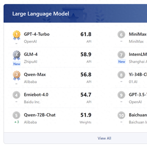 在综合性客观评测中,智谱清言GLM-4、阿里巴巴Qwen-Max和百度文心一言4.0具有较为均衡和全面的性能,这些模型在语言和知识等基础能力维度上可比肩GPT-4 Turbo。