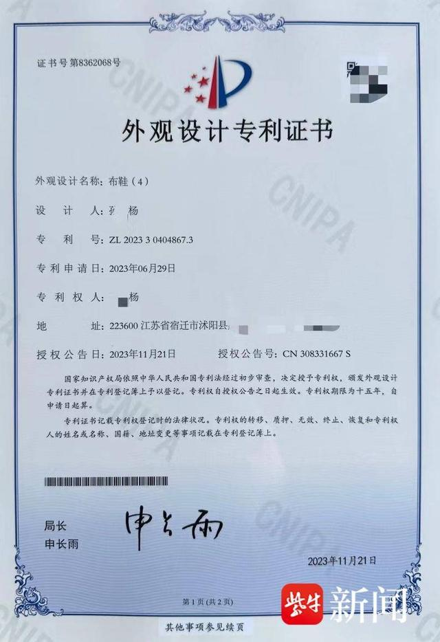 孙晓杨小时候就喜欢画画和做手工,这个爱好给刚创业的他帮了不少忙。“光把以前的老手艺传承下来是不行的,还要改良,使其更符合当代年轻人的审美,满足他们的需求。”于是,他在千层底布鞋的鞋面上加入了刺绣元素。这样一来,鞋子摆在架子上,大家看一眼就会被满满的中国风韵味所吸引。为了保护自己的劳动成果,他还申请了外观设计专利证书。