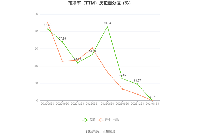市盈率为负时,不显示当期分位数,会导致折线图中断。