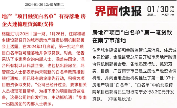 按照住建局的说法,在1月底前,第一批地产项目白名单就可能落地并争取贷款。