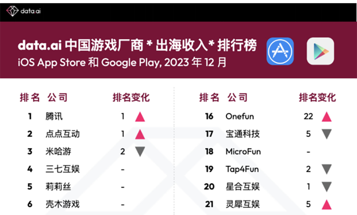 去年12月,在data.ai公布的中国游戏出海收入榜上,这款游戏排名第一,点点互动因此跻身单月收入超过1亿美元的中国游戏发行商之列,仅次于腾讯,领先米哈游。
