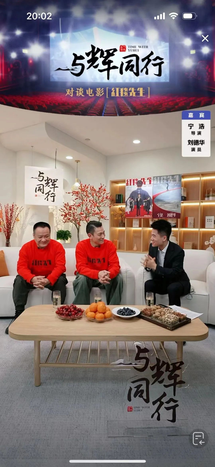 1月31日晚上8点,刘德华与宁浩现身“与辉同行”直播间,以“沟通和理解”为主题,和董宇辉对谈。这次对谈的背景是,宁浩执导、刘德华主演的电影《红毯先生》于2月10日大年初一上映。