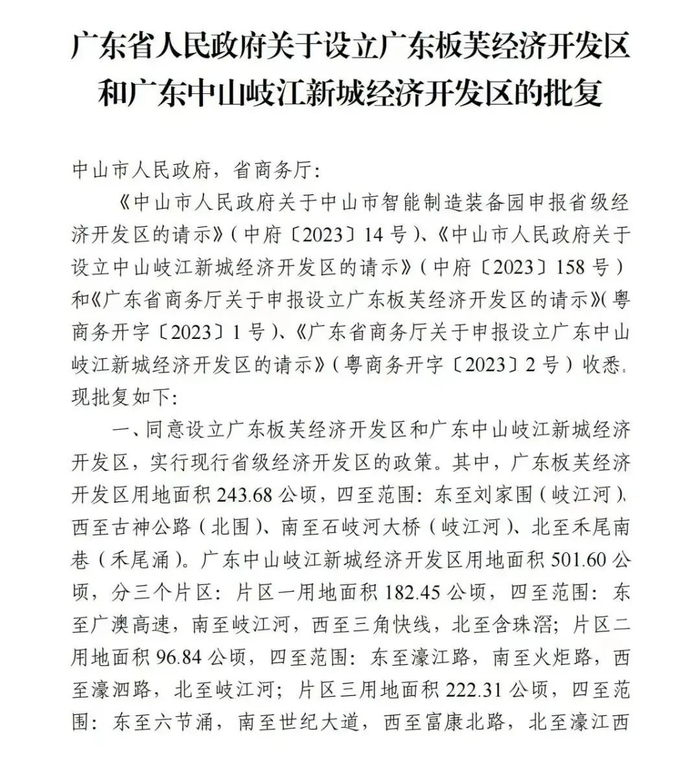 正式批复!中山新增2个省级经济开发区