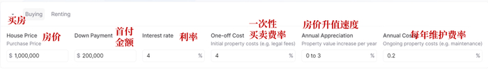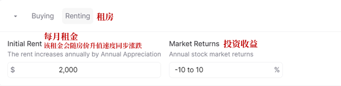 一项是填写月租金,这里暗含的假设是每年租金会随着房价涨跌相同幅度;