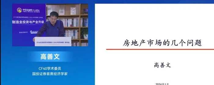 1月27日,聚焦“制造业投资与产业升级”,CF40宏观政策季度报告(2023年四季度)发布会在北京举行。国投证券首席经济学家高善文出席并演讲。以下为相关报道: