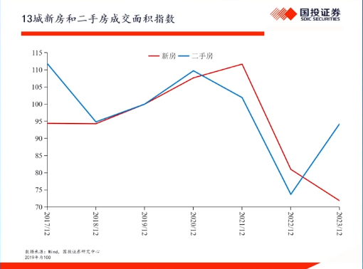 我们以一手房来看,2021 年以后,这些城市的一手房的交易量都继续缩量,到 2023 年大约缩到七折的水平。