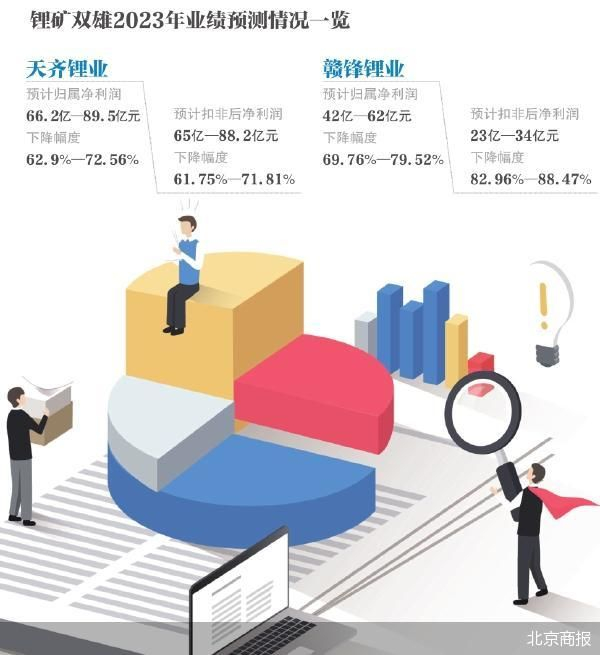 1月31日,天齐锂业、赣锋锂业同时披露业绩预告,两股2023年净利均最多下跌逾七成。