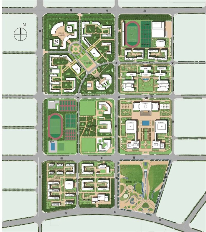 河北地质大学新校区项目位于文正大街以东、隆兴大道以南、河阳路以北、安顺街道以西,总占地1775亩,按照总体规划分三期建设实施: