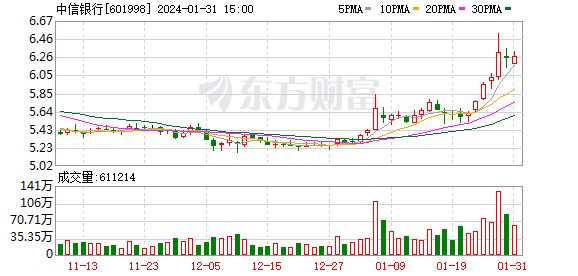中信银行大涨18%