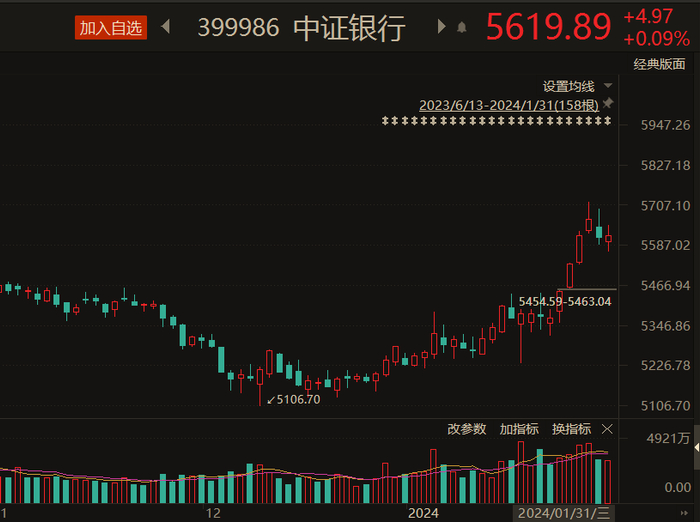 市场人士认为,去年末,市场中存在着过度悲观预期,影响了银行股表现。随着步入新年,各项提振经济的举措纷纷亮相,银行股走强也是预期之中。