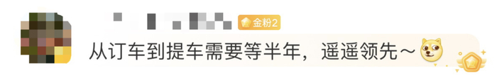网友:从订车到提车等半年,遥遥领先。