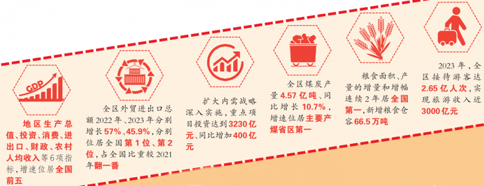 一是高水平推进对外开放。主动服务和融入共建“一带一路”、西部大开发等国家重大战略,深入落实中国—中亚峰会、第三届“一带一路”国际合作高峰论坛、自治区党政领导出访等外交成果,进一步扩大与中亚国家投资贸易规模,务实推进物流、人文、能源、农业、安全等多领域合作,加快畅通区域经济循环,努力打造亚欧黄金通道和向西开放桥头堡。