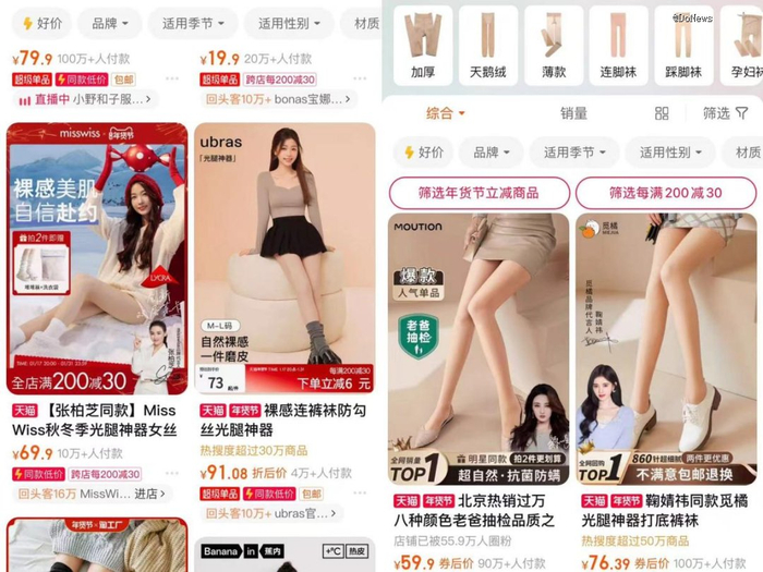 搜索电商平台,价格在十几到九十多远不等的“光腿神器”也在直播热卖。