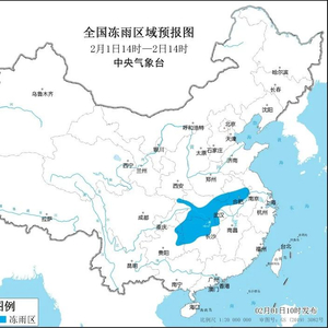 预计2月1日至4日,河南南部、湖北、安徽中北部、江苏北部、湖南中北部、贵州东部、重庆东南部等地部分地区有持续性冻雨。其中,2月1日14时至2日14时,河南南部、安徽中北部、湖北西南部和中东部、湖南中北部、贵州东北部、重庆东南部等地的部分地区累计冻雨量可达3~8mm,局地10mm以上。