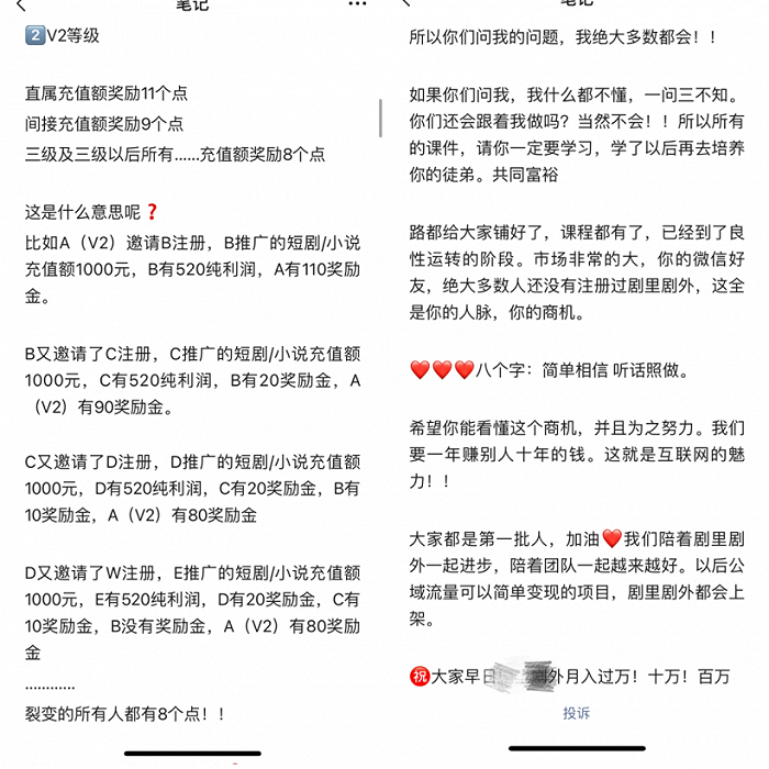 “用人拉人的方式做短剧切片营销的公司很多。毕竟忽悠别人能赚钱,比自己干活更容易也更迅速。但是这种无限极的模式只要市场局查肯定是传销。不过在短剧切片领域,没有‘传销’的受害者,大家没有出钱,付出的是时间和精力,破的也只有发财的梦想而已。”