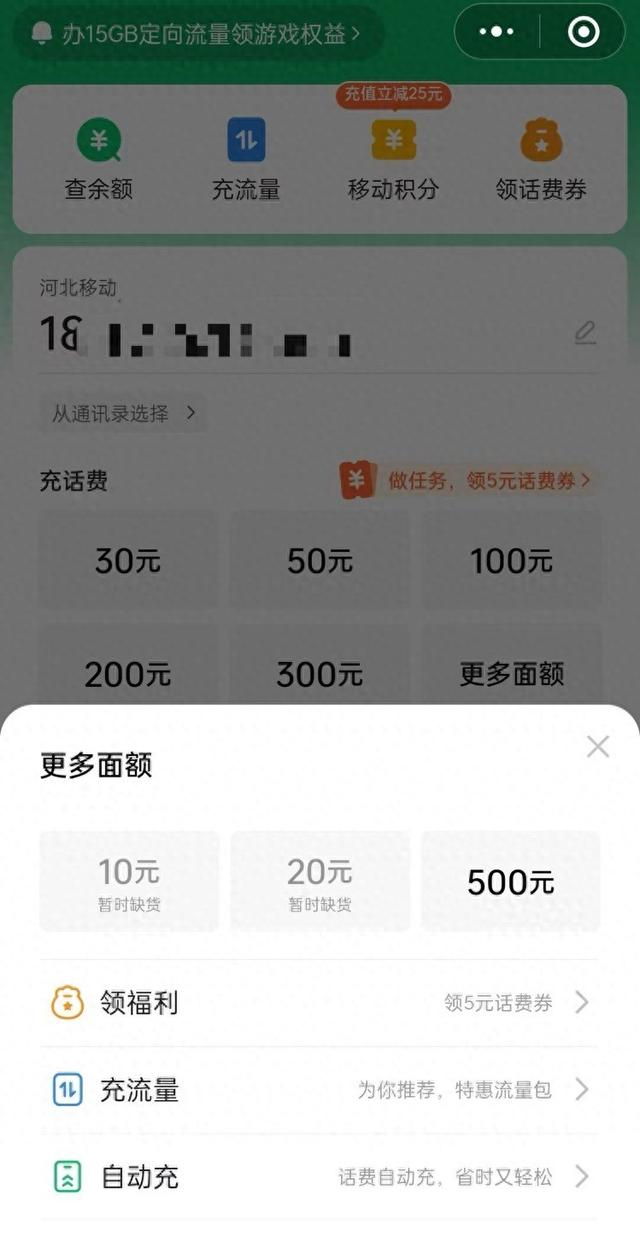 1月21日上午,在家带孩子的张女士通过微信的手机充值小程序,进行了两笔话费充值,每次500元,共计1000元。“因为老在微信上冲,就没看就充了。”