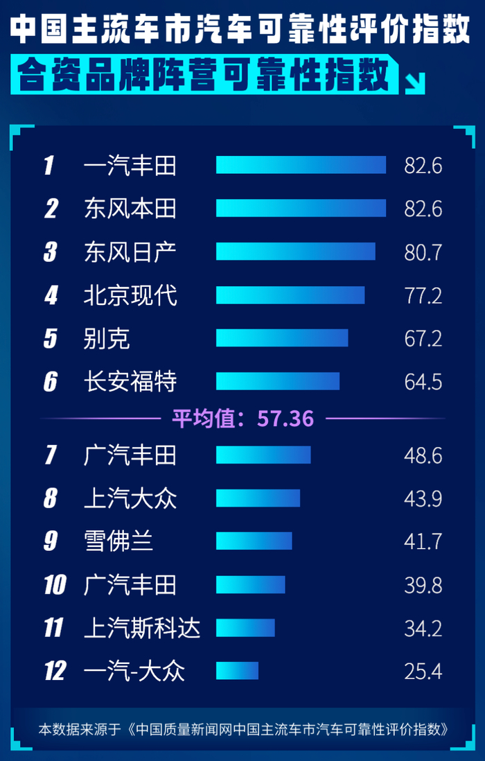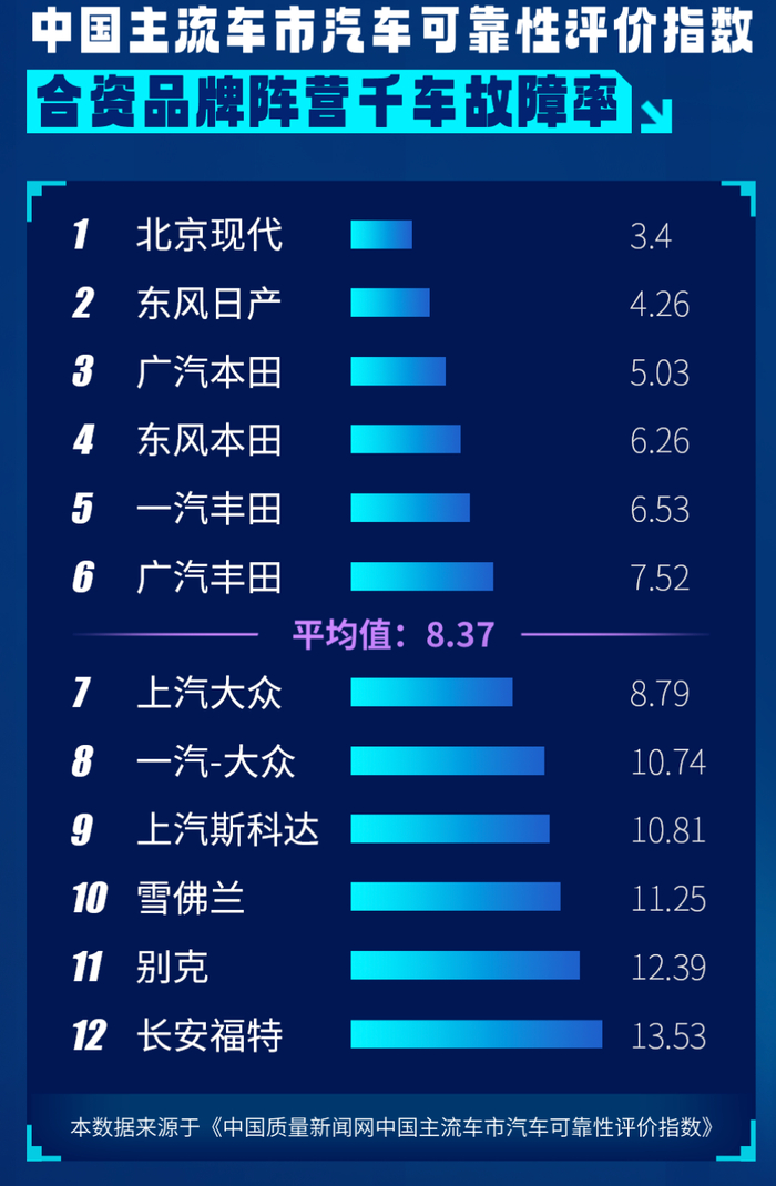 中国质量新闻网发布主流合资品牌可靠性、故障率评分
