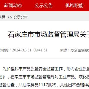 石家庄市市场监督管理局关于2023年度产品质量监督抽查结果的通告(二)