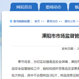 江苏省溧阳市市场监督管理局关于公布2024年1期食品安全监测结果信息的公告