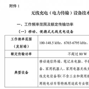 2021年,工信部公布了《无线充电(电力传输)设备无线电管理暂行规定(征求意见稿)》,要求移动和便携式无线充电设备的额定传输功率不超过50W,这限制了所有便携设备的无线充电功率上限。