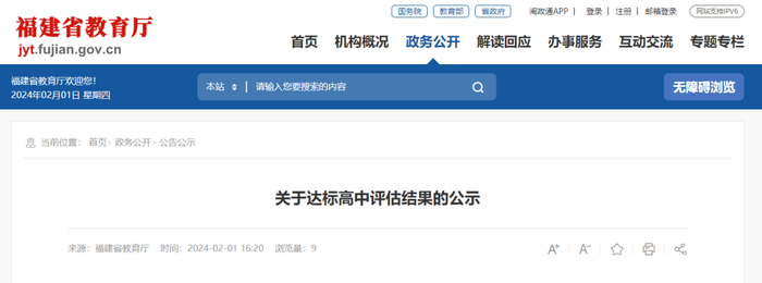 关于达标高中评估结果的公示