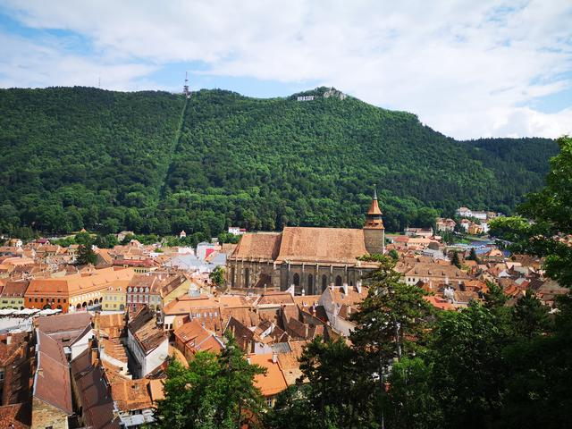 老城的“背景板”是一片高耸茂密的绿。布拉索夫被称作“坦帕山脚下的城市”,这个角度恰恰印证了这一点。坦帕山密布森林,海拔960米,当年山顶上曾兴建过防御要塞,不过1458年被瓦拉齐亚大公弗拉德三世率军摧毁。这位弗拉德三世,正是吸血鬼德古拉伯爵的原型。