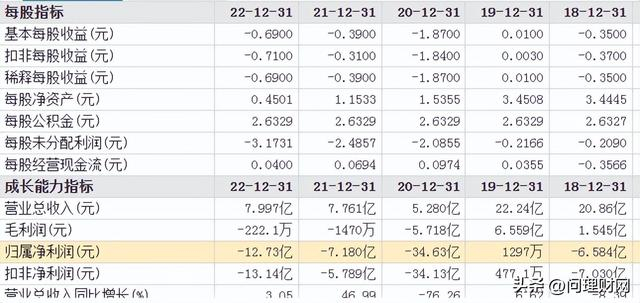 2019年勉强扭亏后,2020年则彻底歇菜!问理财注意到,2020年至2022年公司实现营收仅在5亿元至8亿元区间,而同期净利润则分别亏损34.63亿元、7.18亿元、12.73亿元……
