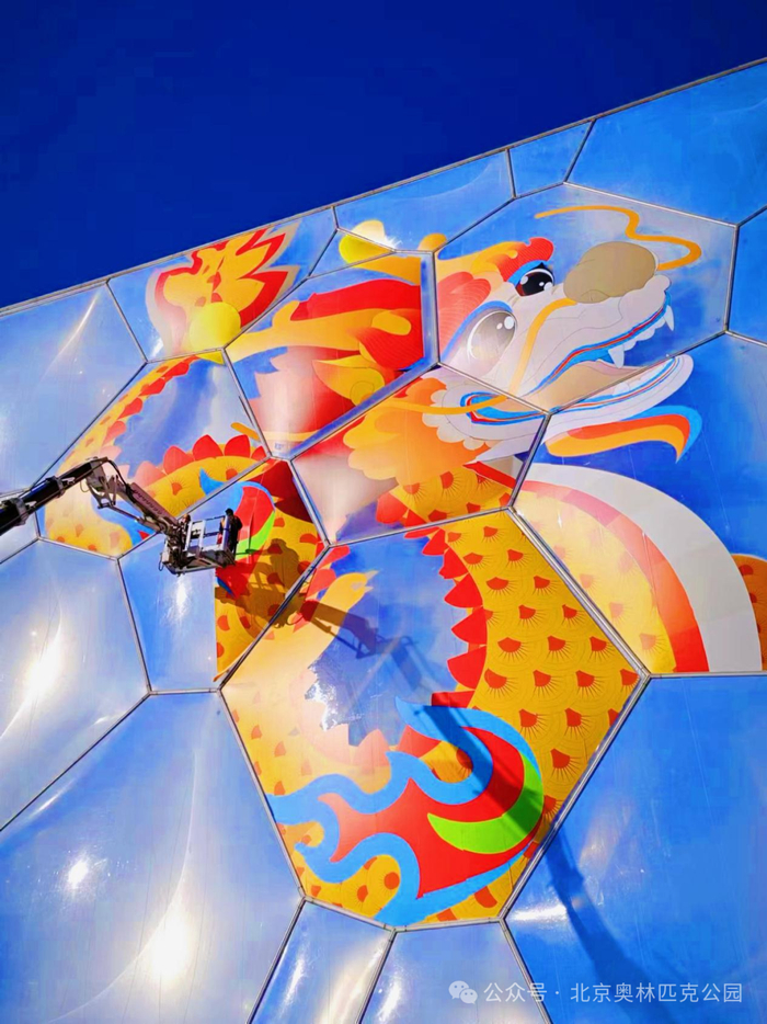 春节期间,一幅高30米、宽30米,面积近1000平方米的“吉祥龙”巨型景观将出现在水立方外立面膜结构上。“若空游无所依”的巨龙景观与奥林匹克中心区龙形水系遥相呼应,必将成为龙年新春京城文旅打卡新地标。