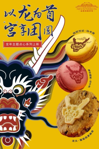 甲辰龙年将至,故宫角楼咖啡上新了一套“舌尖上的”龙主题文创——龙须酥拿铁、龙点睛奶茶、马卡龙、龙头饼干……一系列特制饮品和甜品,别有一番风味,尽显紫禁城里的龙文化元素。