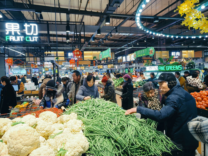 在华运超市中心店,记者看到,生鲜区货架充实、货品丰富,前来采购新鲜蔬菜的市民络绎不绝。蔬菜价格相比平时已经略有上涨,比如,长筒白菜2.08元/500克、毛白菜2.58元/500克、生菜4.68元/500克、瓠子3.98元/500克、黑青菜2.98元/500克、蒜薹9.28元/500克、扁豆9.58元/500克等。