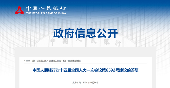 中国人民银行对十四届全国人大一次会议第6592号建议的答复