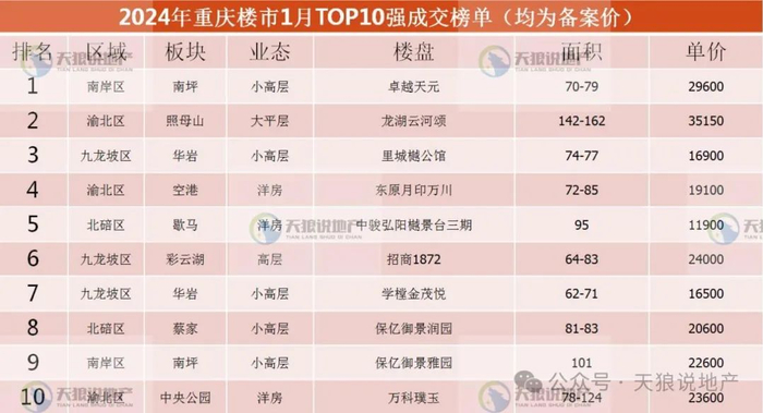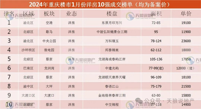 附:2024年1月重庆楼市成交排行榜