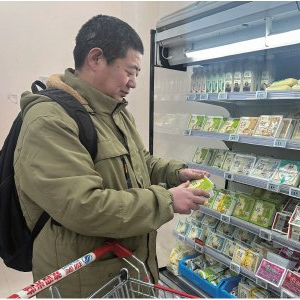 北京市朝阳区一家商超内,消费者正在购买豆制品。 农民日报·中国农网记者 侯雅洁 摄