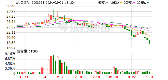 公司发展前景不明,股价也“跌跌不休”不断刷新历史新低。截至2月1日收盘,品渥食品下跌3.64%,报收18.81元/股,盘中股价最低触及18.20元,创历史新低。掌舵人王牧或许未曾料想,头顶“进口食品第一股”的品渥食品如此之快便跌下神坛。