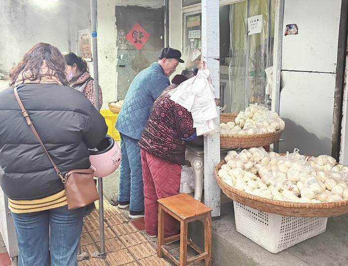 蒸包子也是很多市民过年的必备选择。市民黄女士说:“过年肯定是要准备包子的,以前家里老人都是自己动手包包子、蒸包子,然后分给子女,现在我们都直接去店里订。我们家今年就订了50个肉包子、50个菜包子,还有40个萝卜丝包子。”