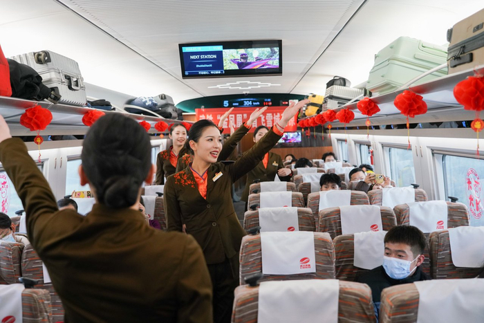 担任G852/3次首发任务的列车长李婷是武汉客运段从该段“凤舞楚天”乘务组中精挑细选的“金凤凰”列车长,她激动地说:“能参加武汉至西宁的高铁首发任务,我非常荣幸,我将带领乘务组为旅客们提供最好的服务!”